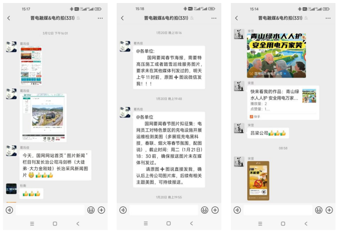 與山西攝影家協(xié)會、新華社、山西電視臺、人民攝影報等專業(yè)機構、媒體合作,與文物、鄉(xiāng)村振興等政府部門對接,邀請利益相關方走進保供和服務現場,深入鄉(xiāng)村振興、文物保護、非遺傳承一線舉辦聯合采風活動。邀請主流媒體記者和基層通訊員聯合組建“電約拍”微信群,實時共享拍攝需求,暢通快速投稿、發(fā)稿渠道,利用主流媒體平臺提升影像作品傳播力引導力影響力公信力。